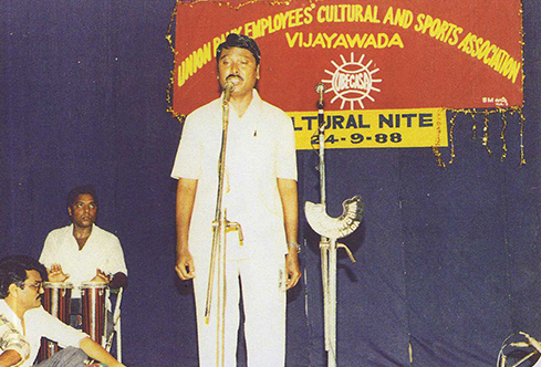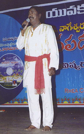 "Folk music is difficult though the repetition of tune is more and pitch will be higher and we have to put more strength. Film music is comaparatively lighter. I have released one music album "Folk to Rock" and i am the first person from Andhra Pradesh to sing Punjabi folk songs in telugu." - C. Nageshwar Rao